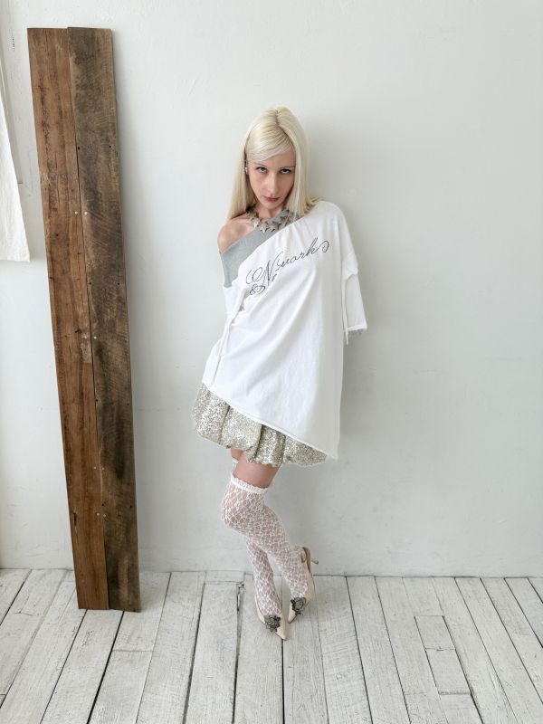 - The irregular-cut bold rib along the asymmetric neckline naturally conforms to the wearer's shoulder over time.