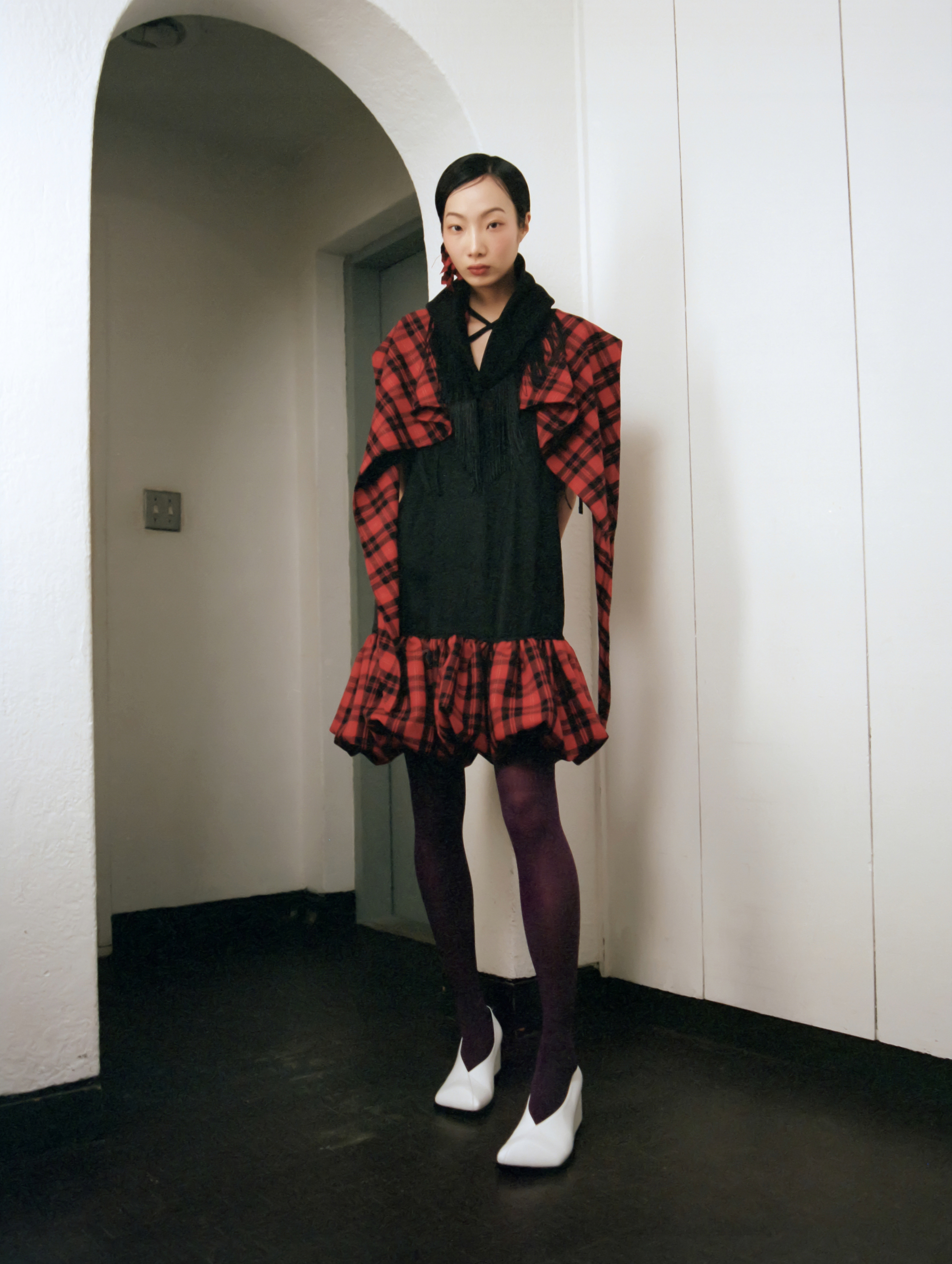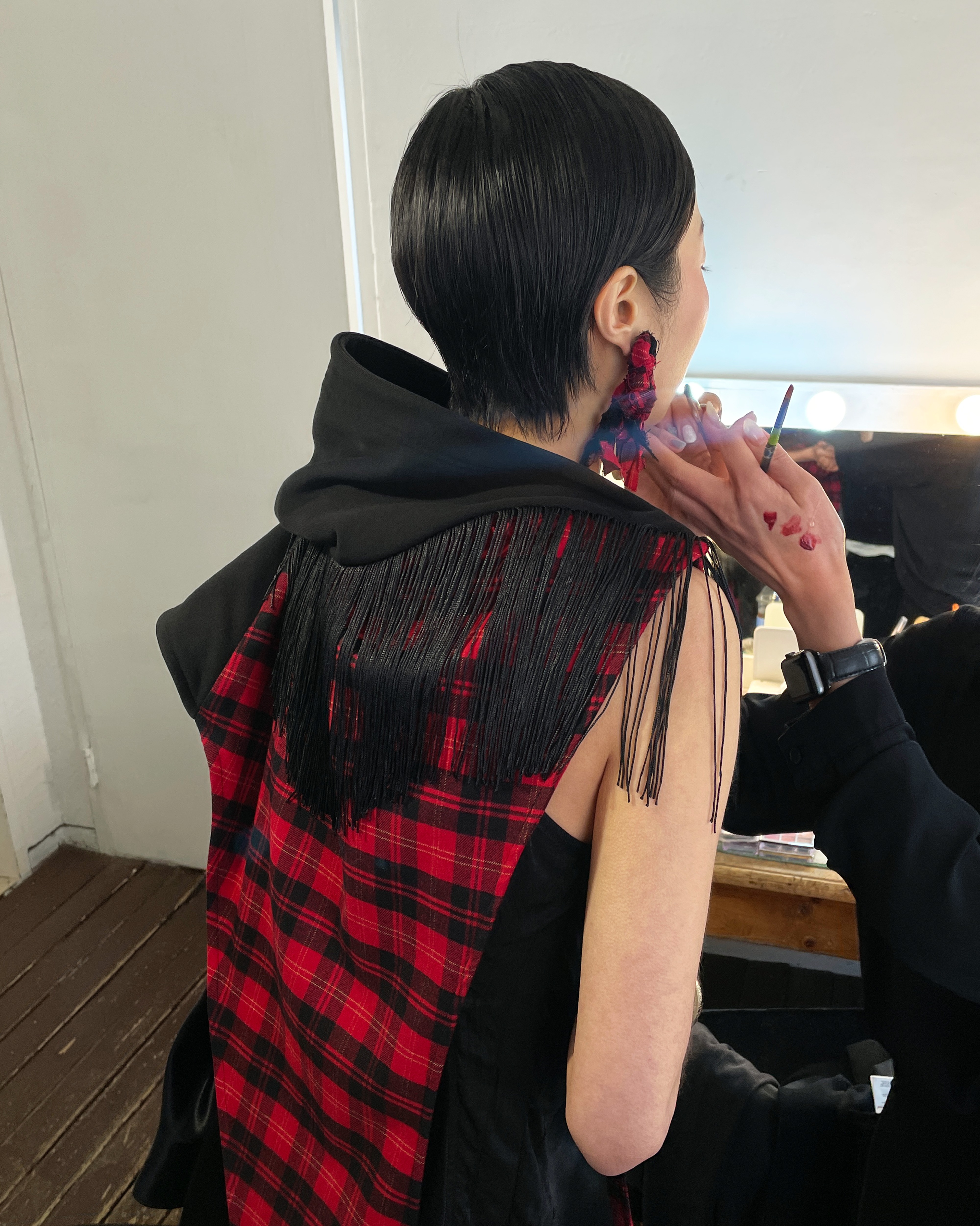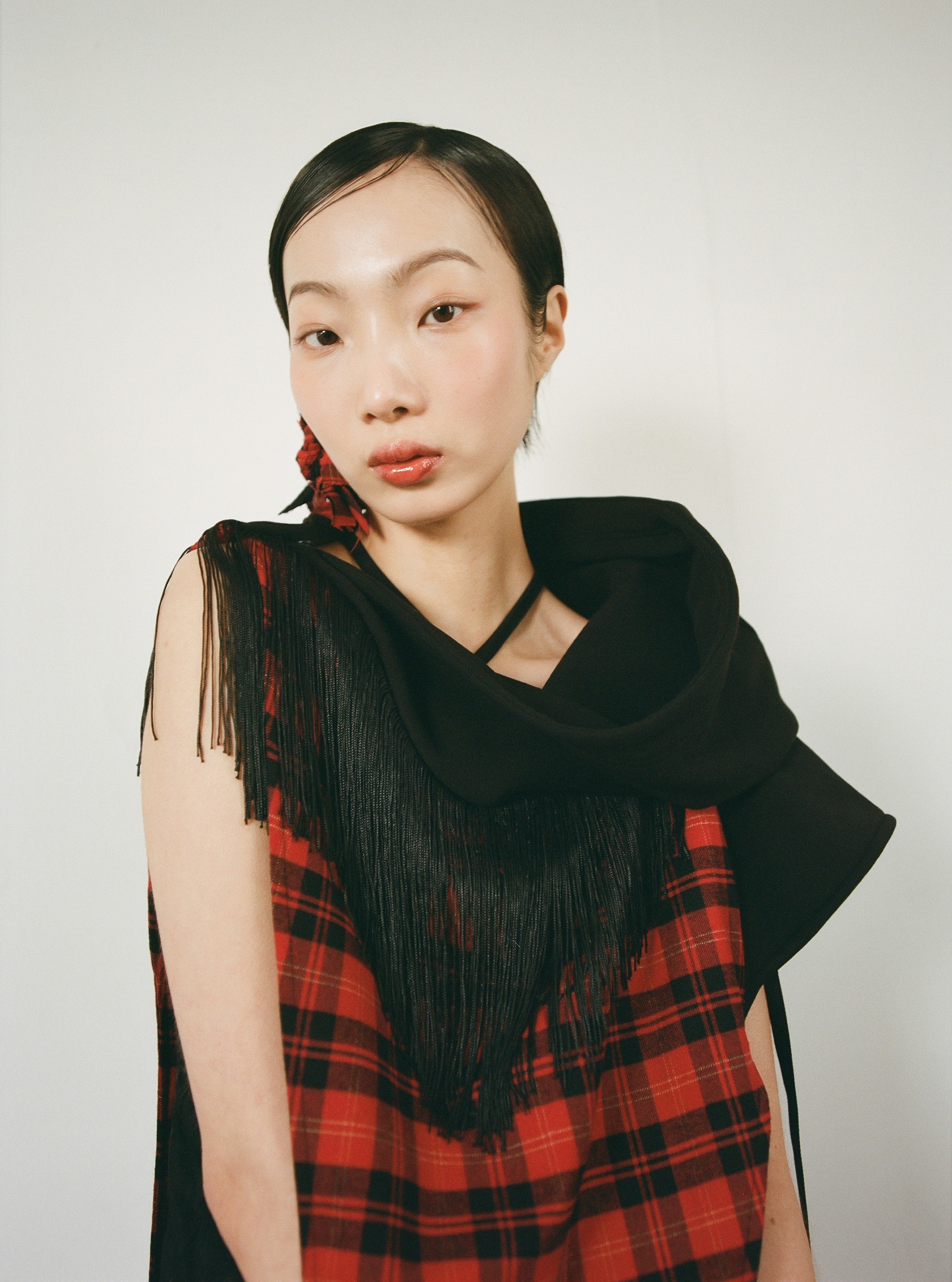 Fringe Hoodie Muffler (Red Tartan) ๐๐ธ๐ ๐ข๐ฝ๐ธ๐ฌ๐ด