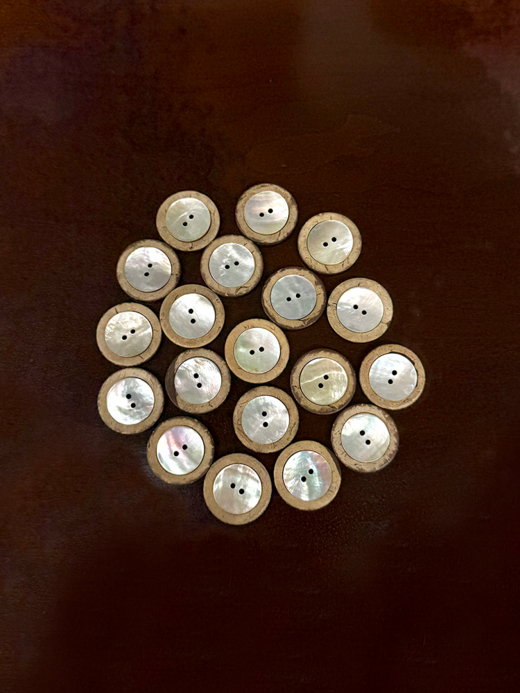 - The buttons, made from natural mother-of-pearl and wood, may vary slightly in grain and colour due to the nature of the materials